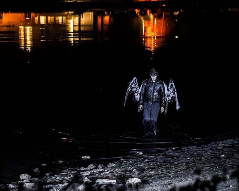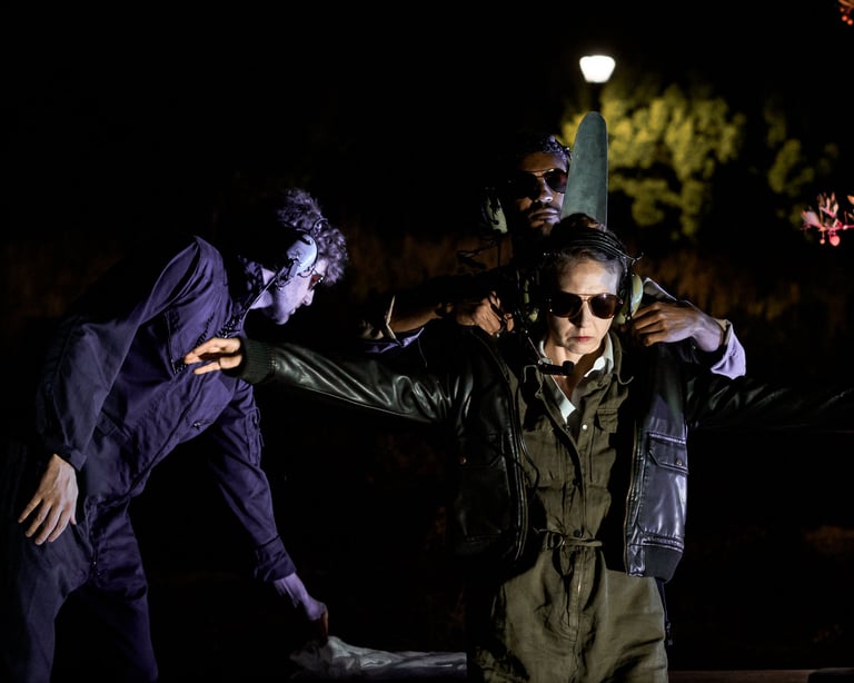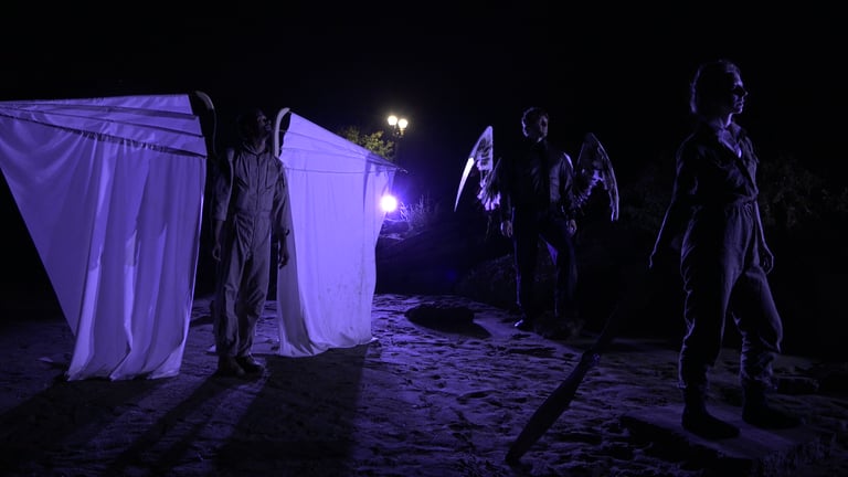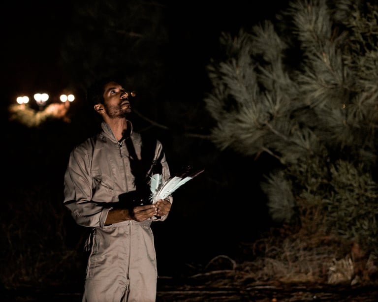 Commissioned by La Jolla Playhouse for the 2019 Without Walls Festival, Ikaros was an audience-centered walking tour through a desert garden path, located on the grounds of a former naval base under the active sky of a nearby airport. Over the course of three months, I designed and built mechanical prop and costume pieces, utilizing sheet metal fabrication tools, CNC machining, soft goods needlecraft, and basic machining tools to create articulated wing mechanisms.