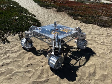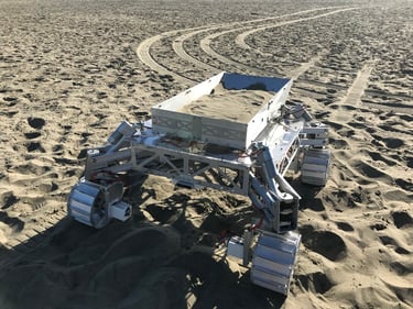 Designed for mining water on the lunar south pole, this first generation of the R3 was built to validate the chassis and lunar regolith transport system. On this project, I designed the active suspension system and wheels, as well as critical components of the proprietary lunar regolith collection tool. I fabricated the aluminum robot chassis and suspension using TIG welding, sheet metal fabrication tools, and CNC machining.
