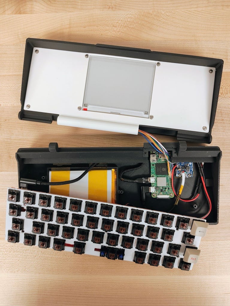The ZeroWriter is a portable, RasberryPi driven e-ink typewriter, capable of native text processing and storage. As part of the open source community developing the device, I contributed updated enclose CAD files, wiring diagrams, and design notes to the ongoing project. I additionally built my own personal device using 3D printing, soldering, and code integration from the communal GitHub repository.